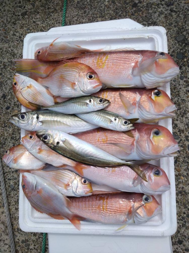 水色悪く流れ不足でしたがたまに型出て皆さんGETできました♪ ゲストにアジ、レンコ鯛、ムシガレイ