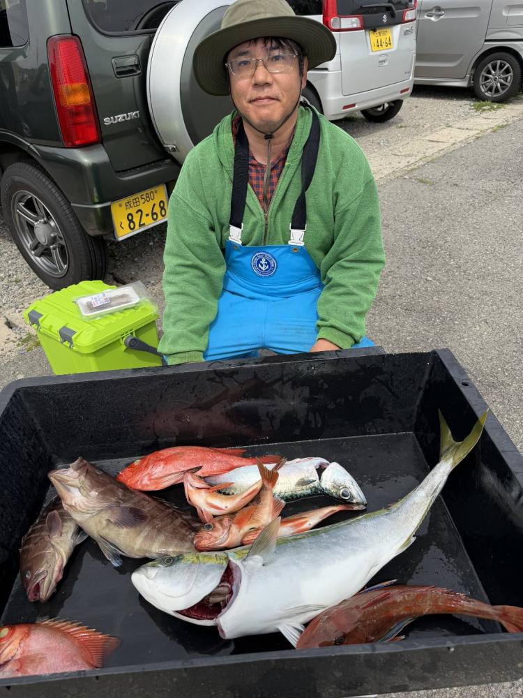 ウネリあり反応バラけていて渋めでしたが転々と見ていきキントキ、マハタ0〜6尾、メバル、ホウボウ、カサゴ、ワラサ、イナダ、アジ等が釣れました(^^)