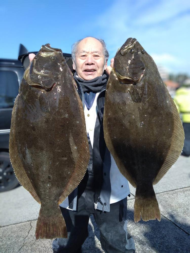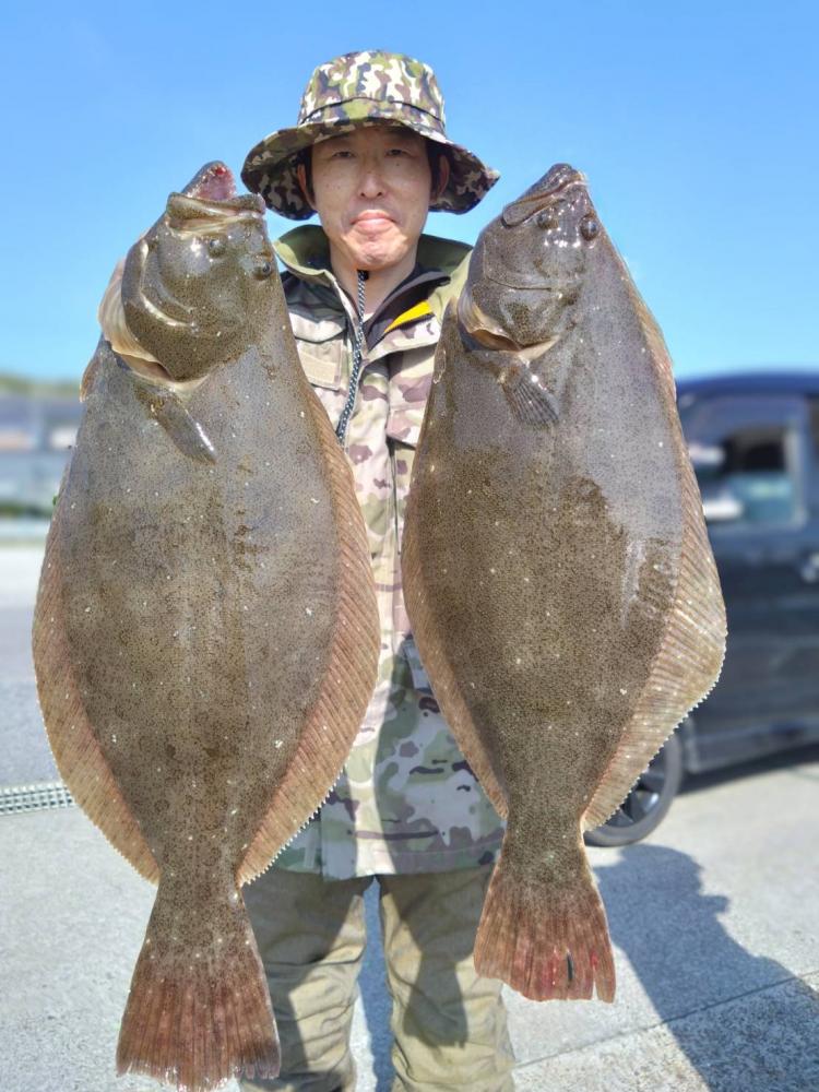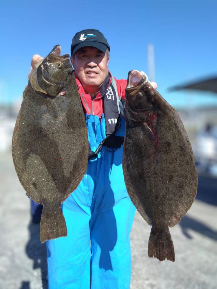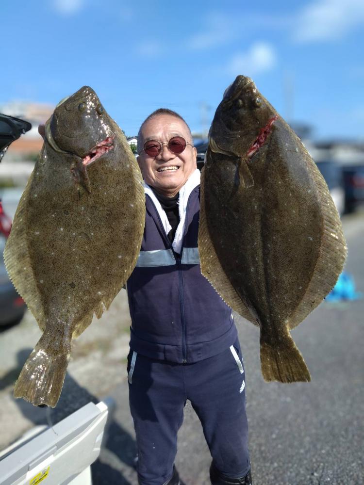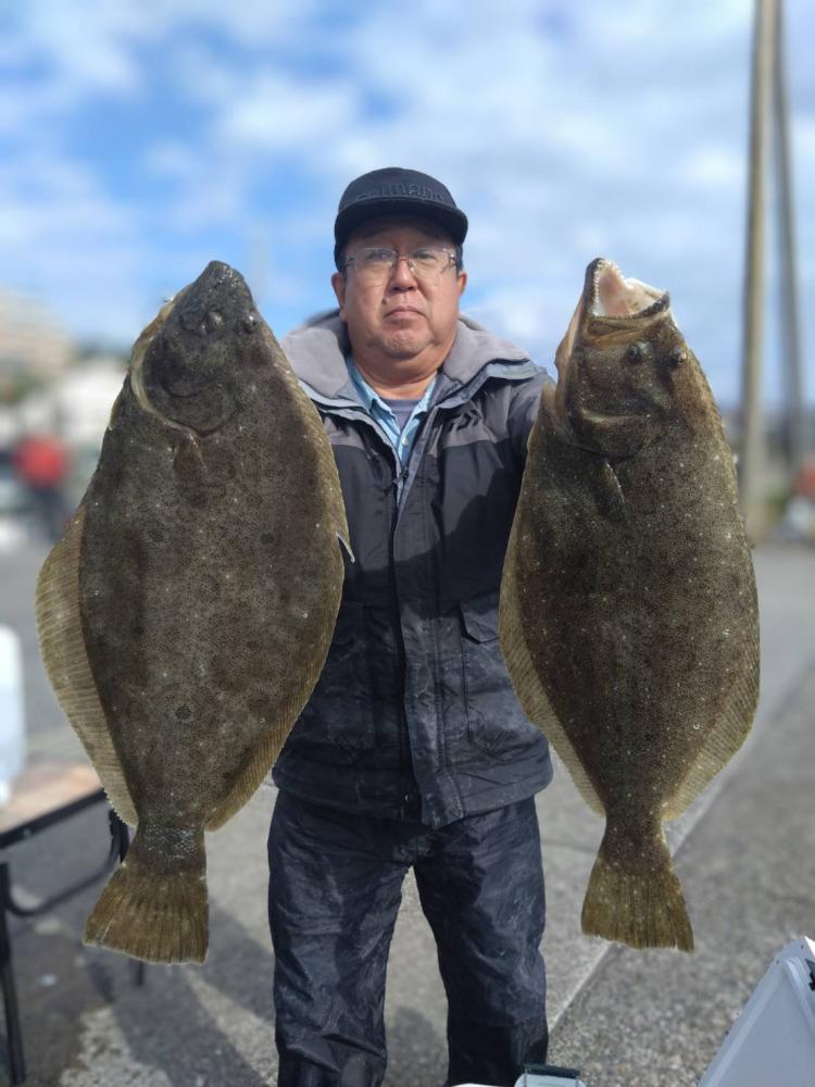 前半で皆さんGETでオデコ回避できたので中盤から型狙いで転々とし3kg台止まりの型程度と恵まれずでしたが、皆さんヒラメサイズ持てました(•‿•) ゲストにカサゴ、マゴチ、スズキ、イナダ。