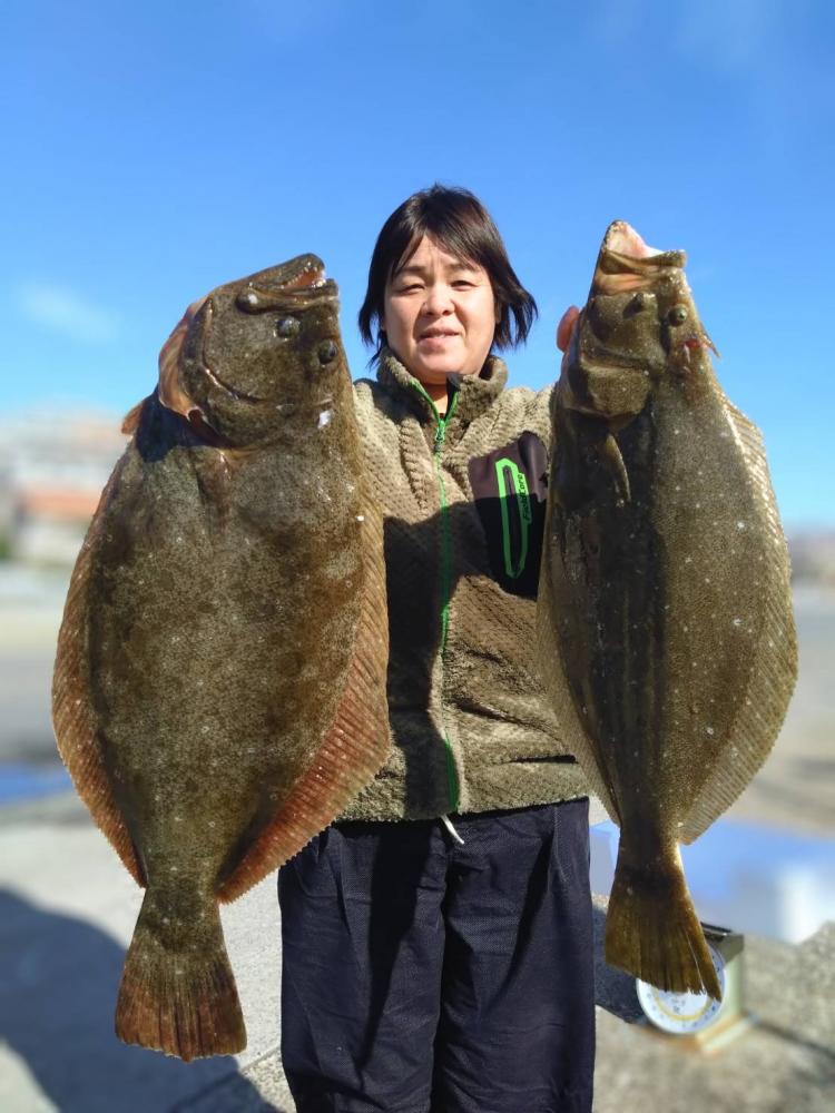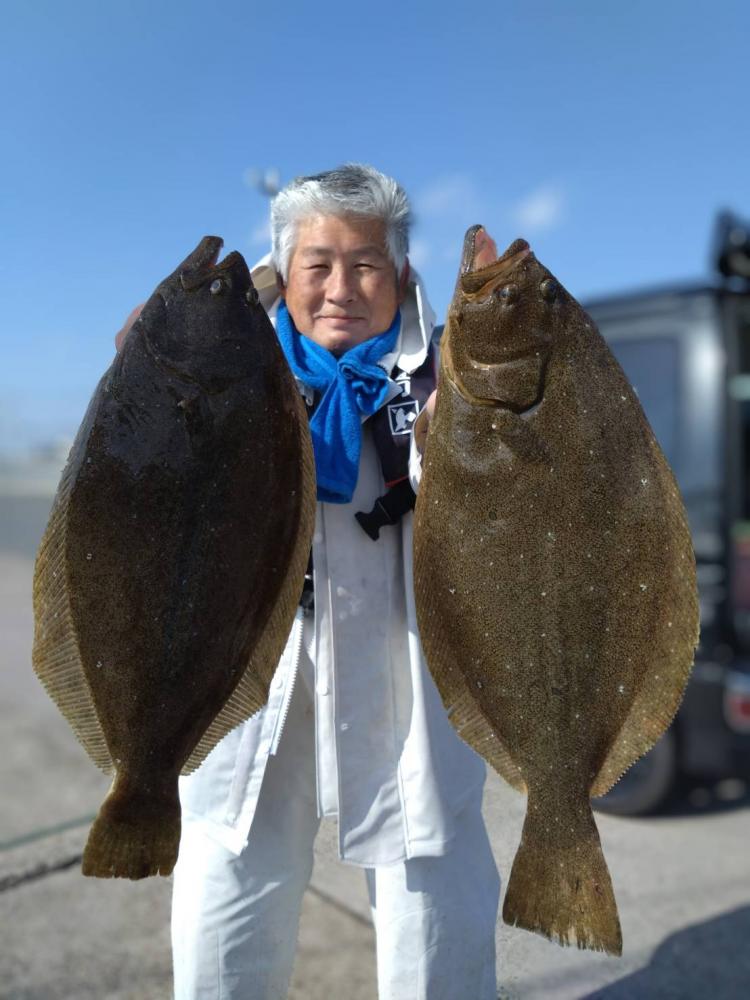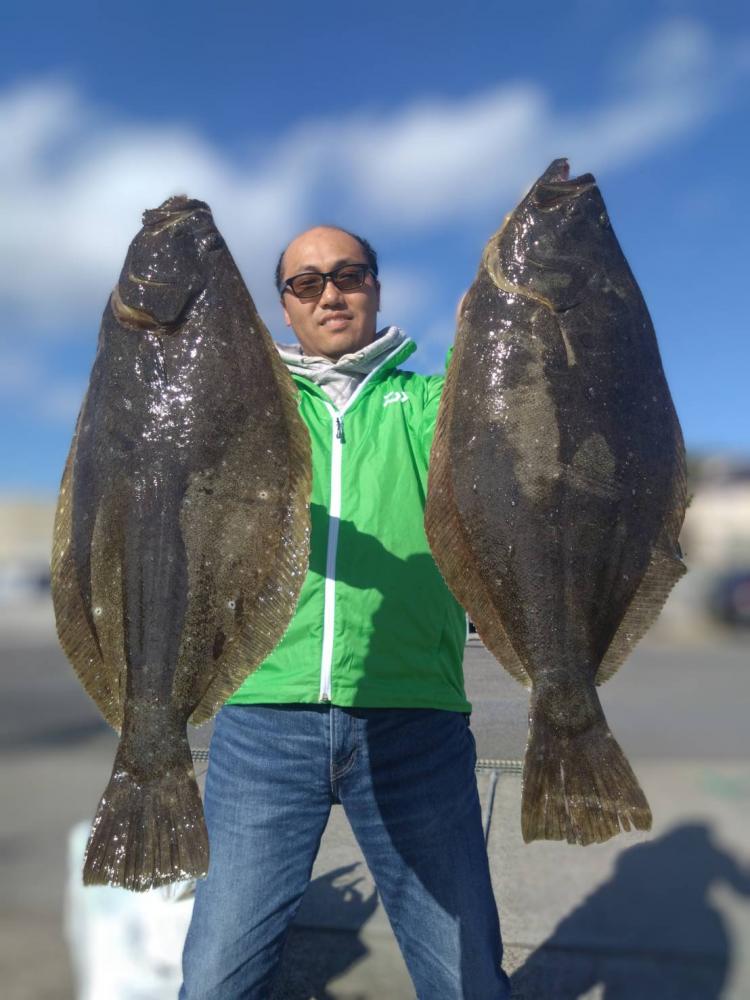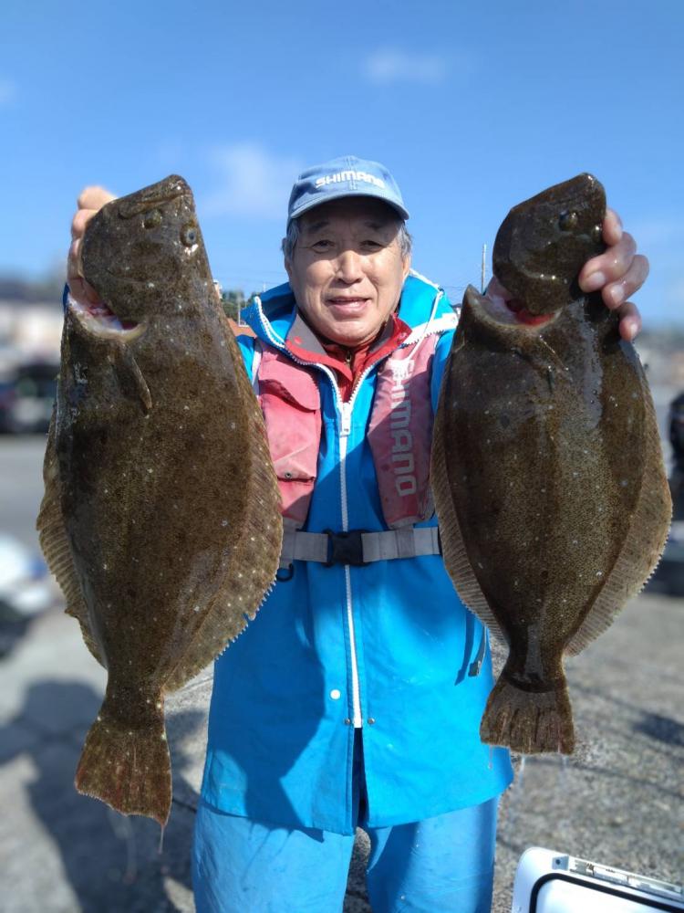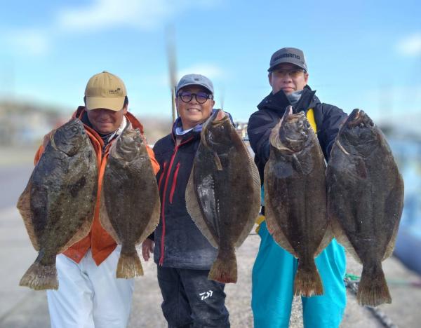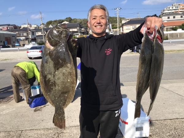 前半で皆さんGETでオデコ回避できたので中盤から型狙いで転々とし3kg台止まりの型程度と恵まれずでしたが、皆さんヒラメサイズ持てました(•‿•) ゲストにカサゴ、マゴチ、スズキ、イナダ。