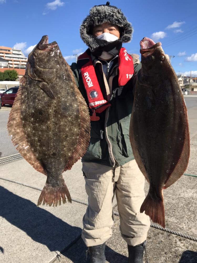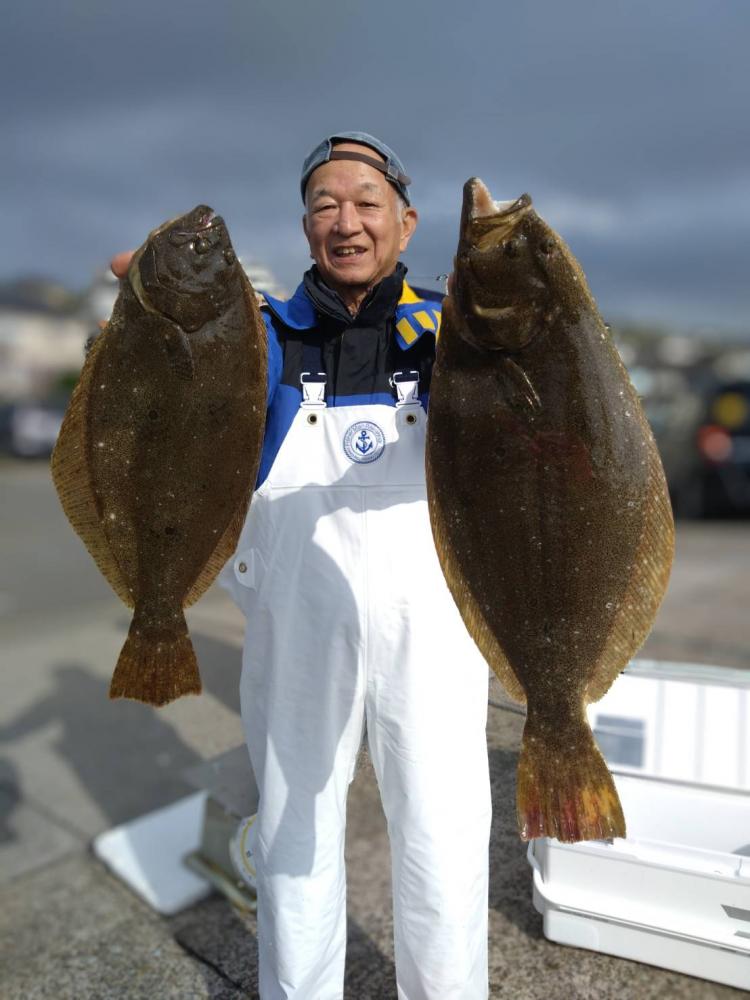 朝から良型まじって好調に釣れました♪9時半頃から風強まり港前へ移動後は型程度で終わっちゃいました。