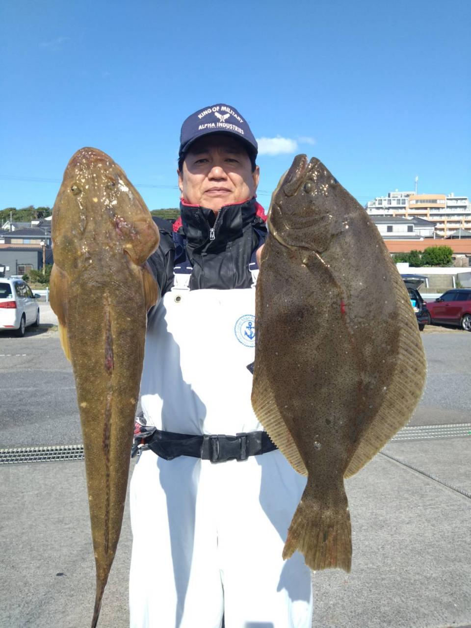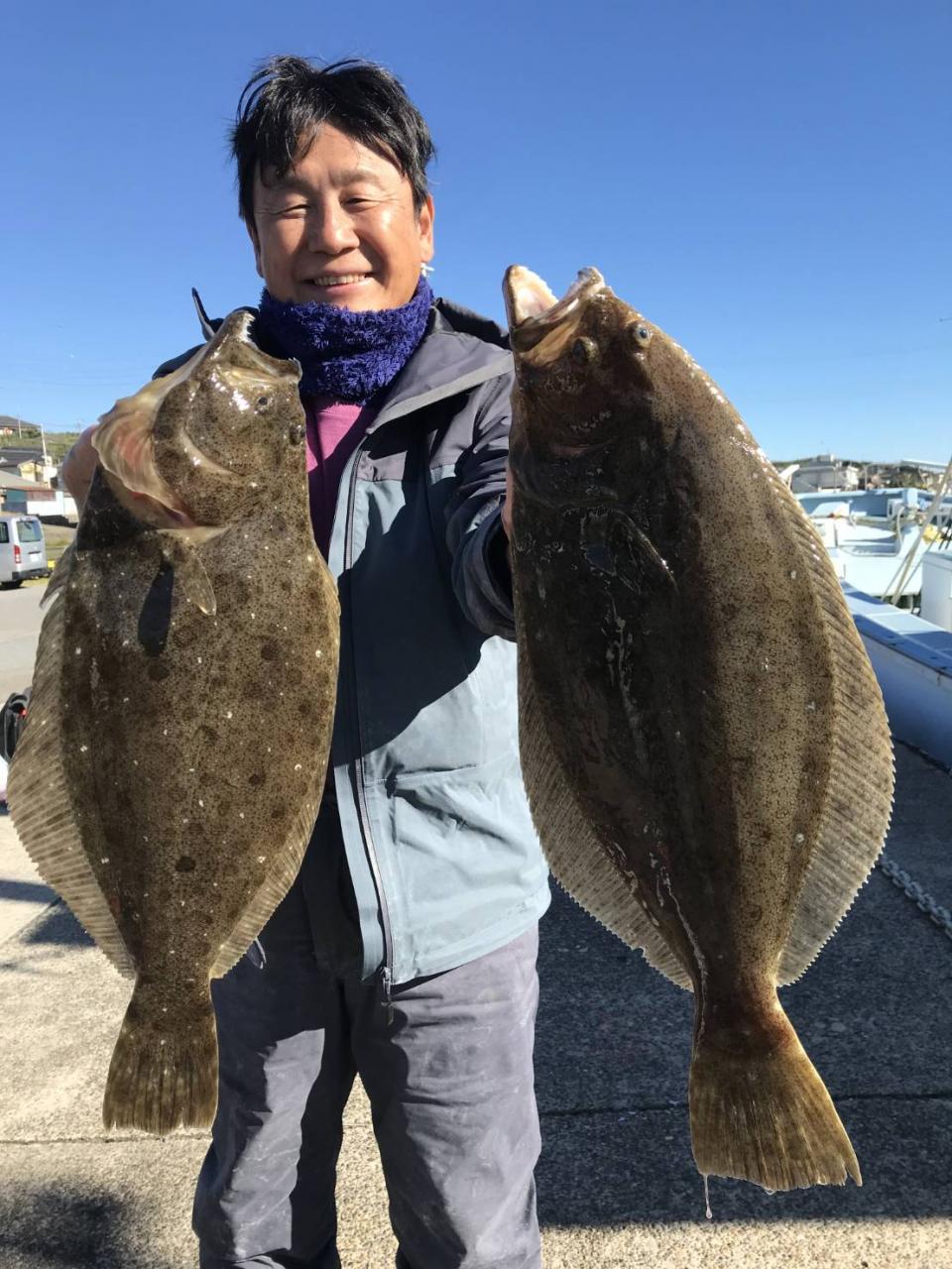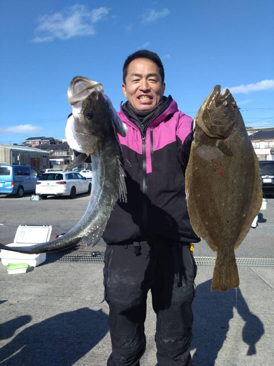 北の強風だったので屏風ヶ浦の風裏を流しました。潮の流れ良くガンガン釣れましたね♪1枚の方は船酔いでした 他カサゴ、マハタ、マゴチ、イナダ、トラフグ。