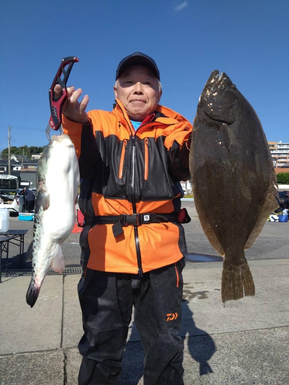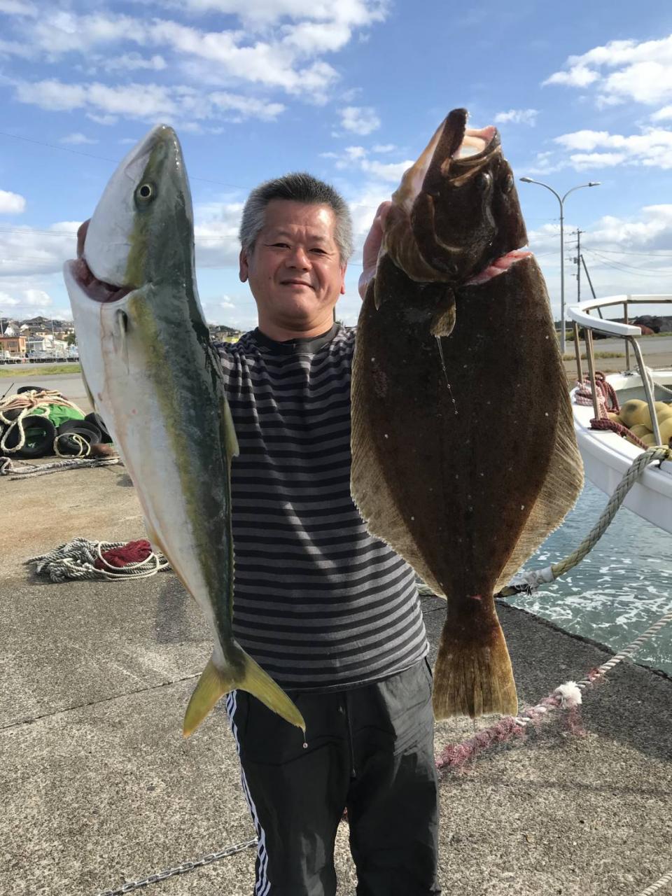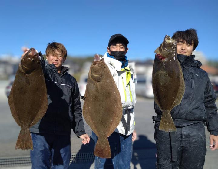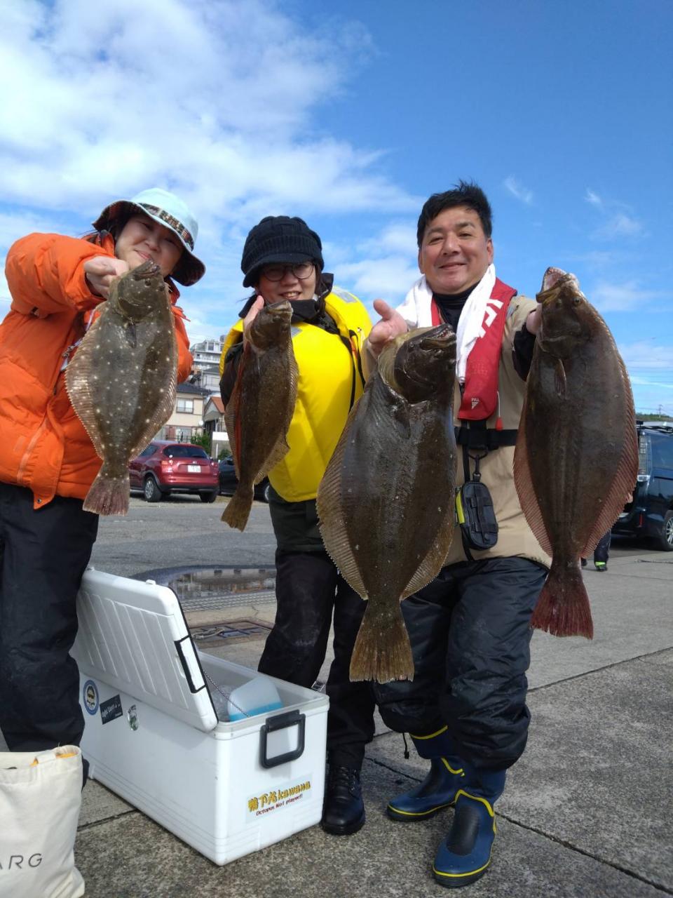北の強風だったので屏風ヶ浦の風裏を流しました。潮の流れ良くガンガン釣れましたね♪1枚の方は船酔いでした 他カサゴ、マハタ、マゴチ、イナダ、トラフグ。