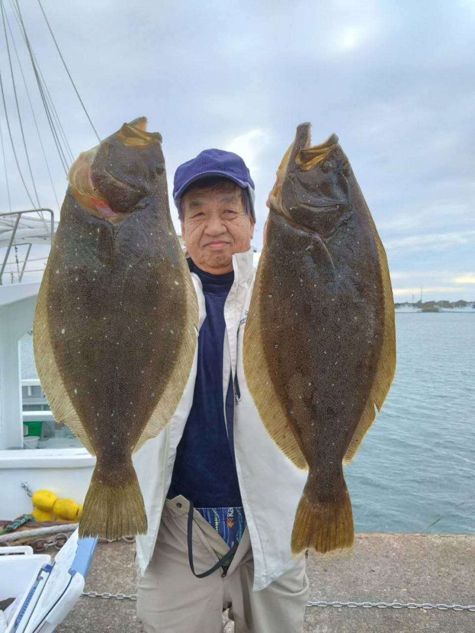 2隻の高低です。1枚の方は船酔いで皆さん均等に釣れました♪