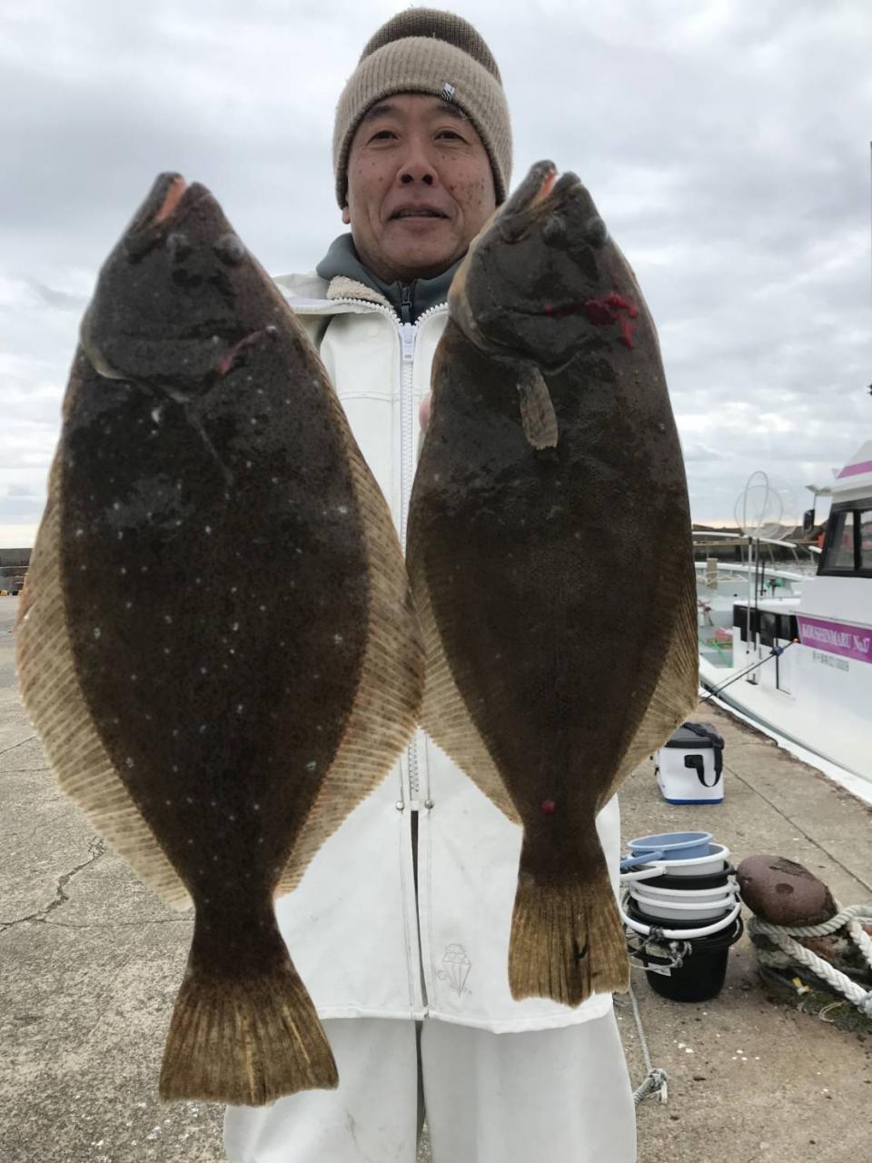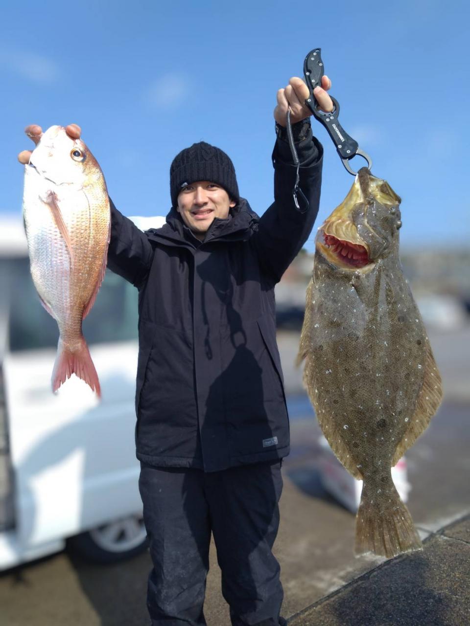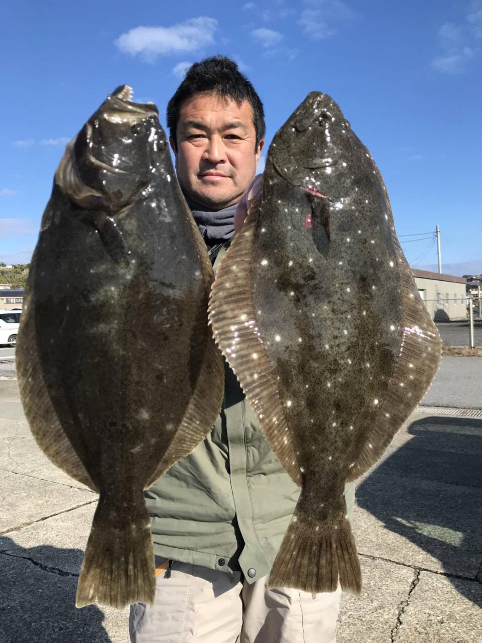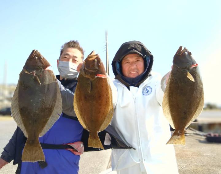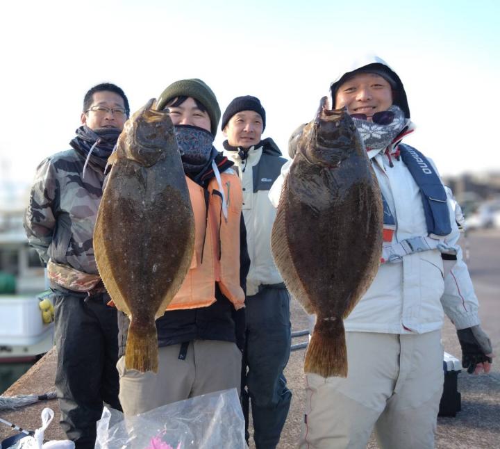 新年1発目のヒラメは雨(*_*)と北の強風だったので屏風ヶ浦の風裏での釣行となりました。流れ良く良型まじりポチポチ釣れ皆さんGETできました! 他カサゴ、イナダ 水色良く明日以降も楽しみです(^^) また明日頑張っていきます♪