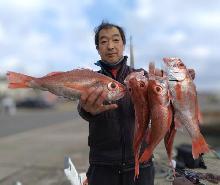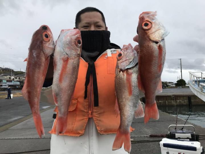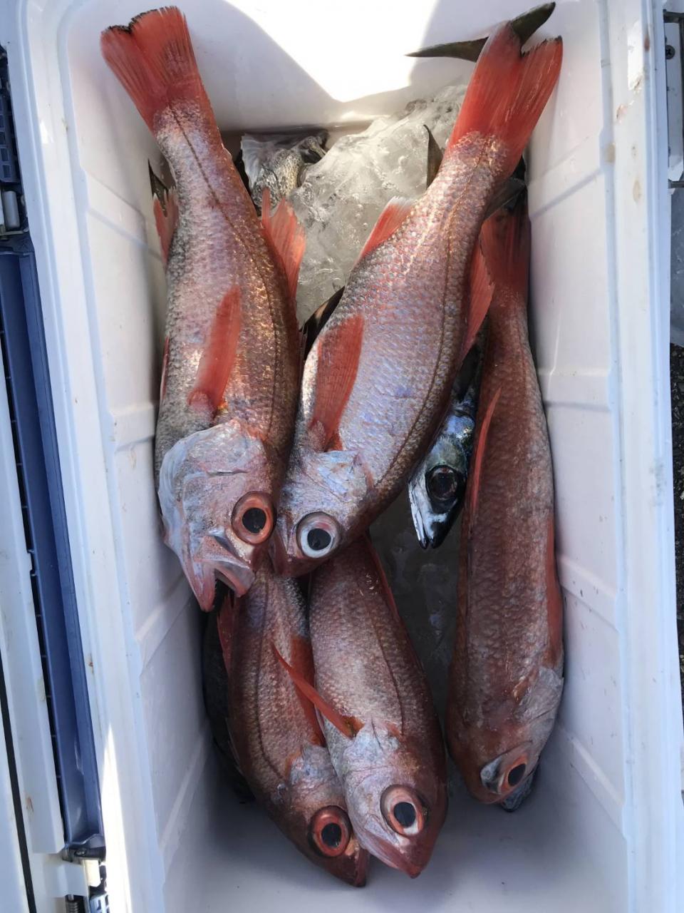 潮の流れ緩やかで釣り易い1日でした。アカムツは良い感じで釣れ皆さんGET出来ました(^^) 他クロムツ、メダイ、ユメカサゴ。