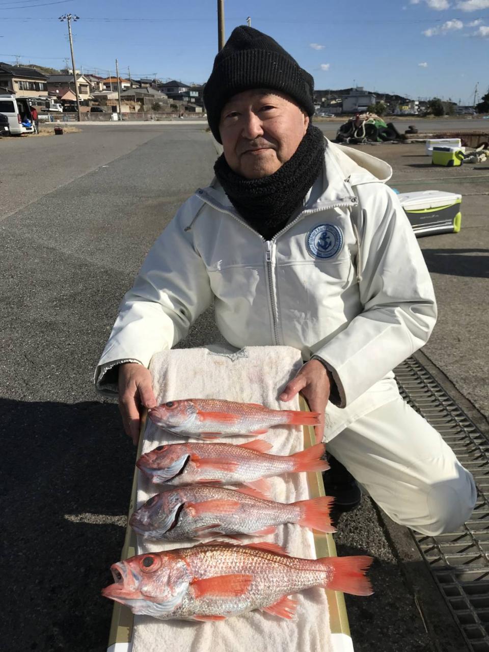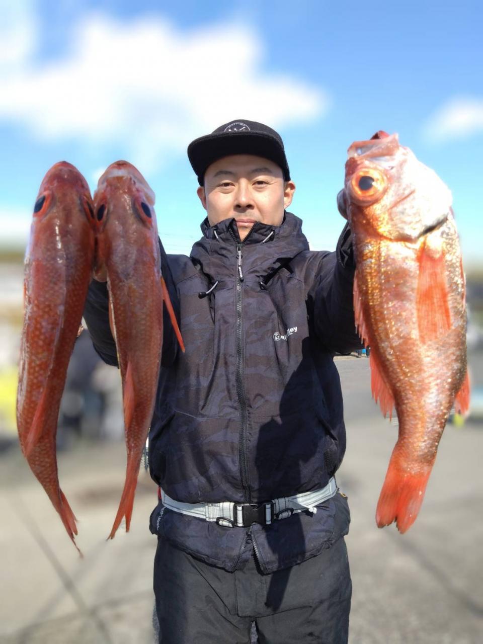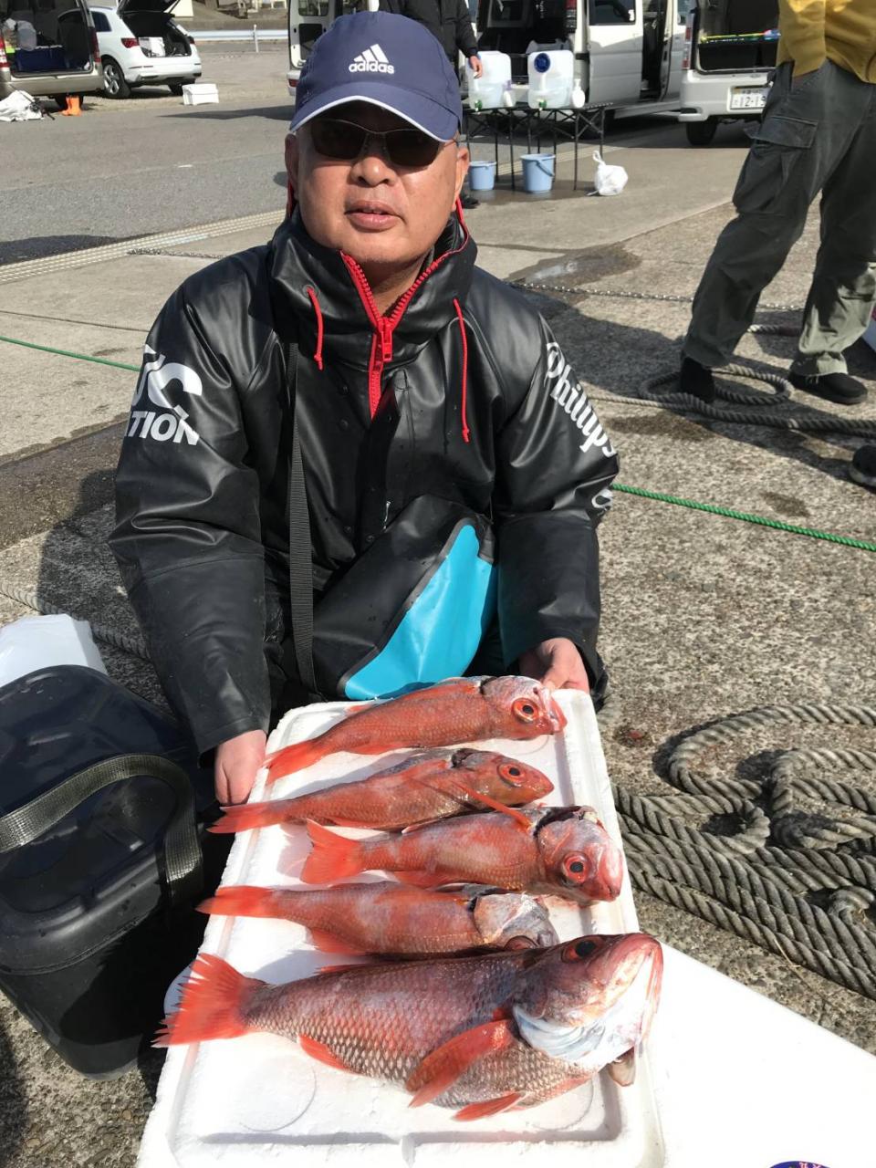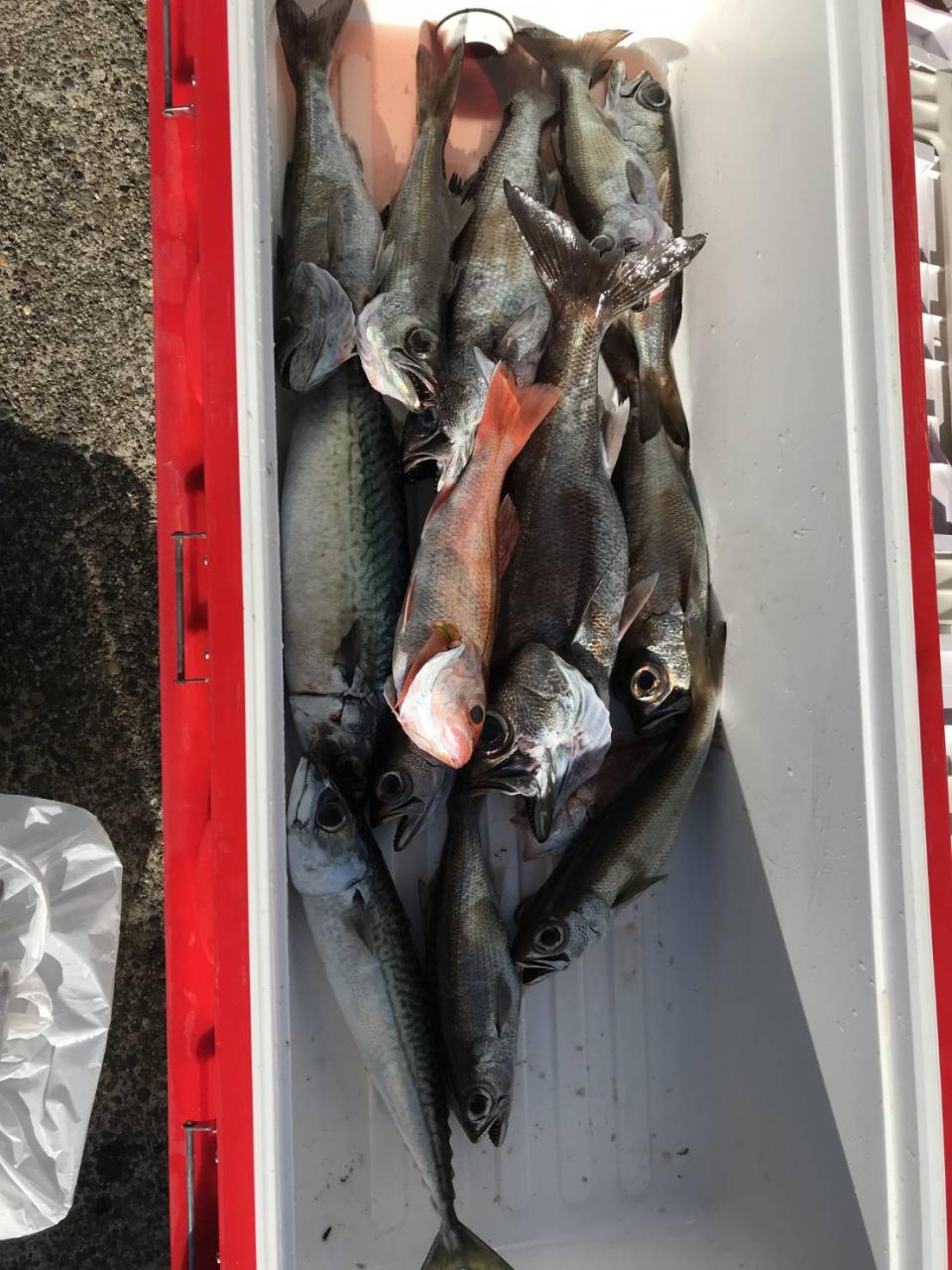 前日より水色ちょい悪く前半型程度でしたが後半につれアタリ多めになり全員GET(^^) 最大4.2㌔上がりました! 他カサゴ