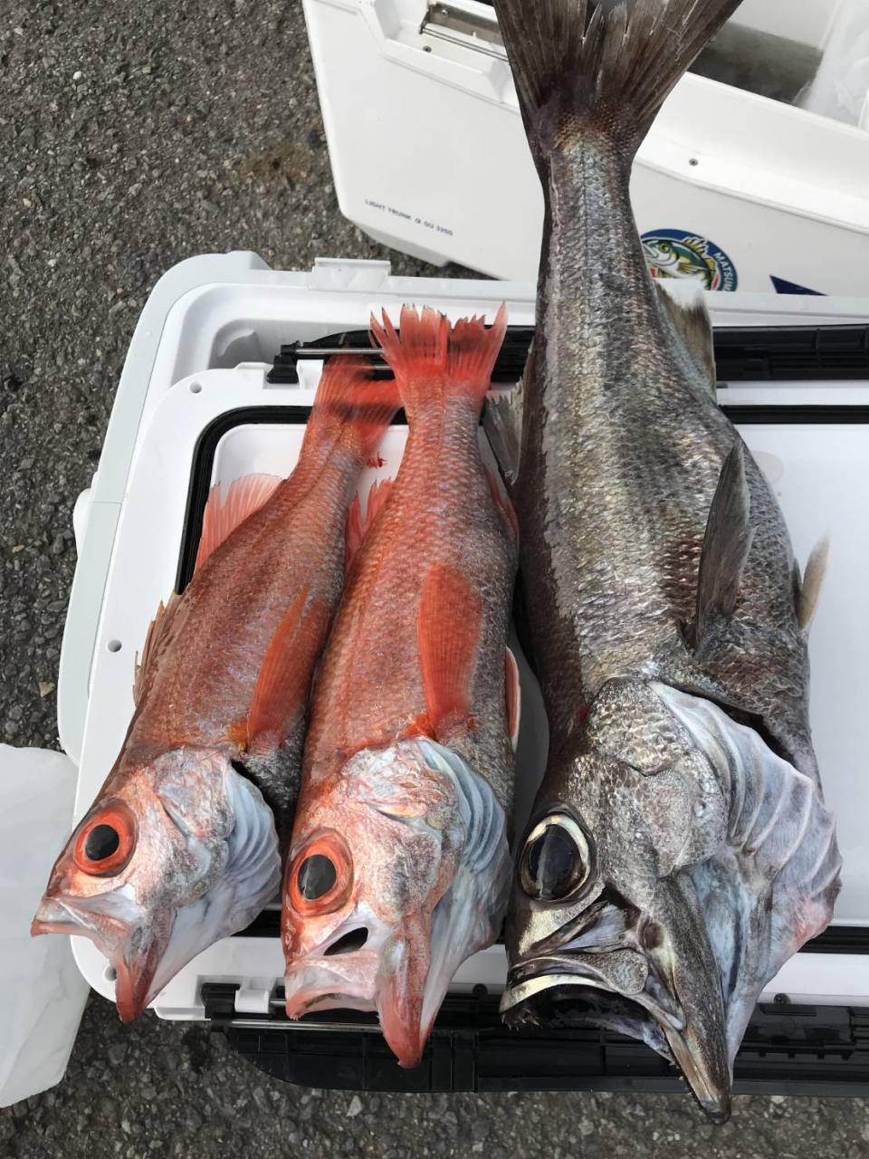 強風でかなり釣り難く厳しかったッス(TT) アカムツはたまーーーに型が見れるくらいでツノザメが多かったですね。他クロムツ、ユメカサゴ