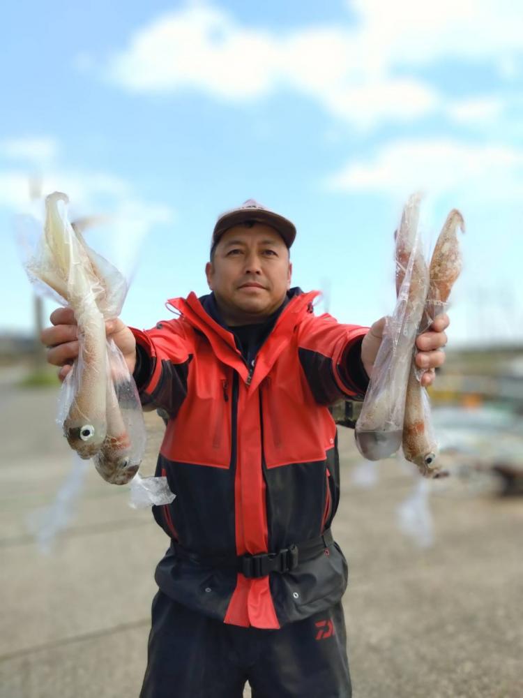 朝方は連続で投入でき単発〜3点掛けでポチポチと好調でしたが、徐々に二枚潮が強烈になり、終わりまで一流し一投での釣行となりうまく行きませんでした。ヤリイカのサイズは中〜大ヤリでしたよ♪ 潮次第ですね、また明日頑張っていきます