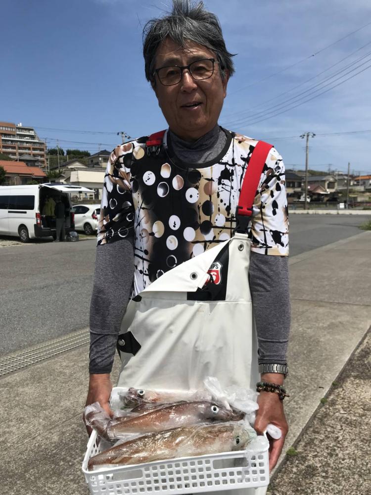 朝方は潮具合良く釣りやすかったが徐々に前日のような二枚潮になり今日も苦戦でした。他スルメ、アジ