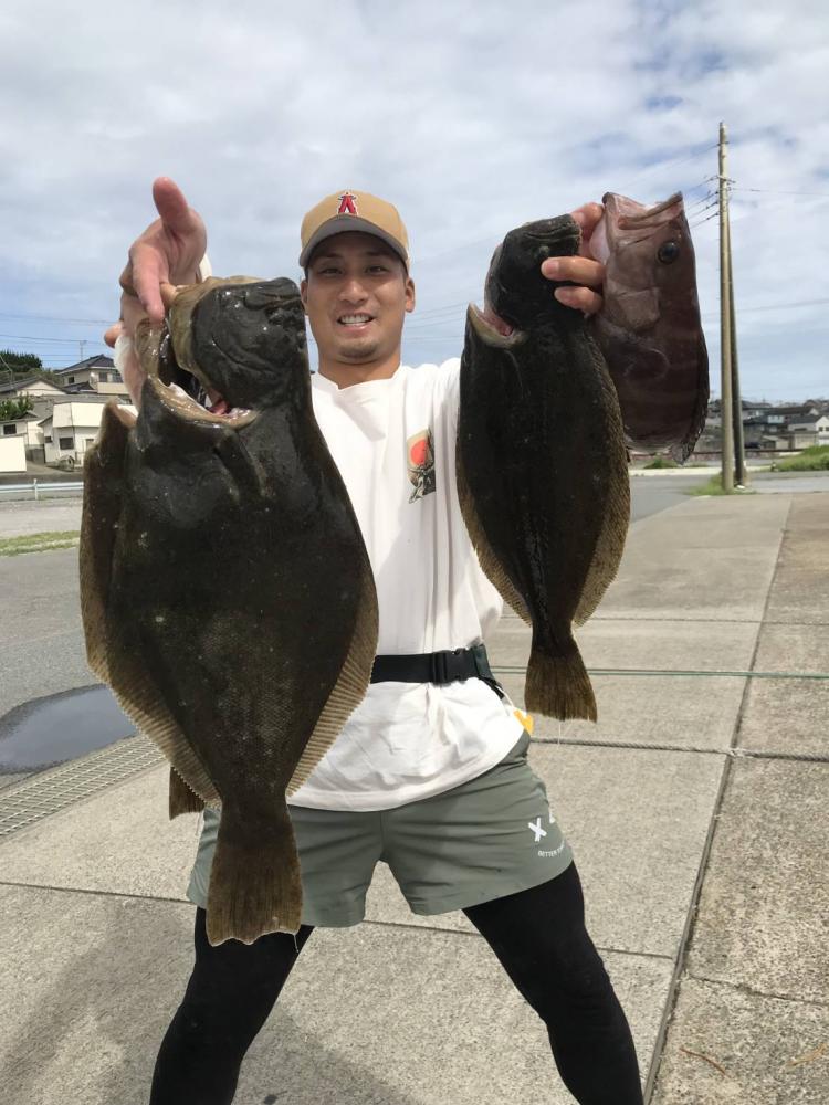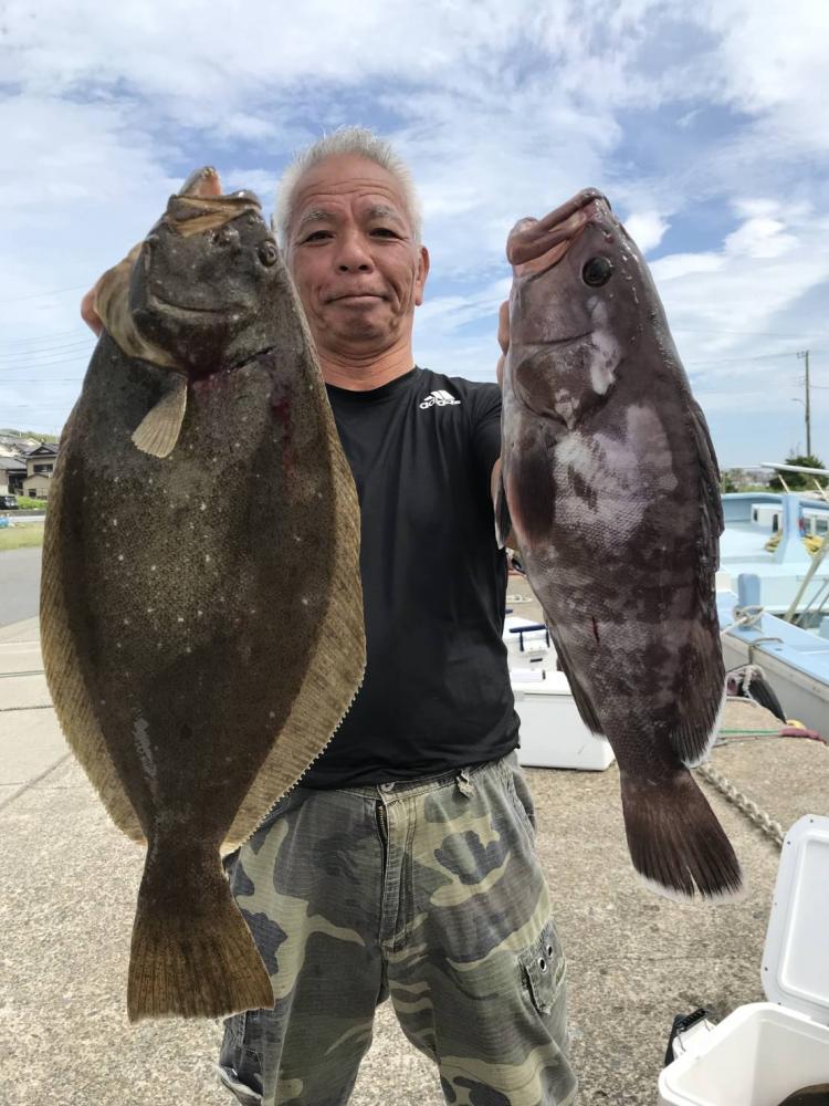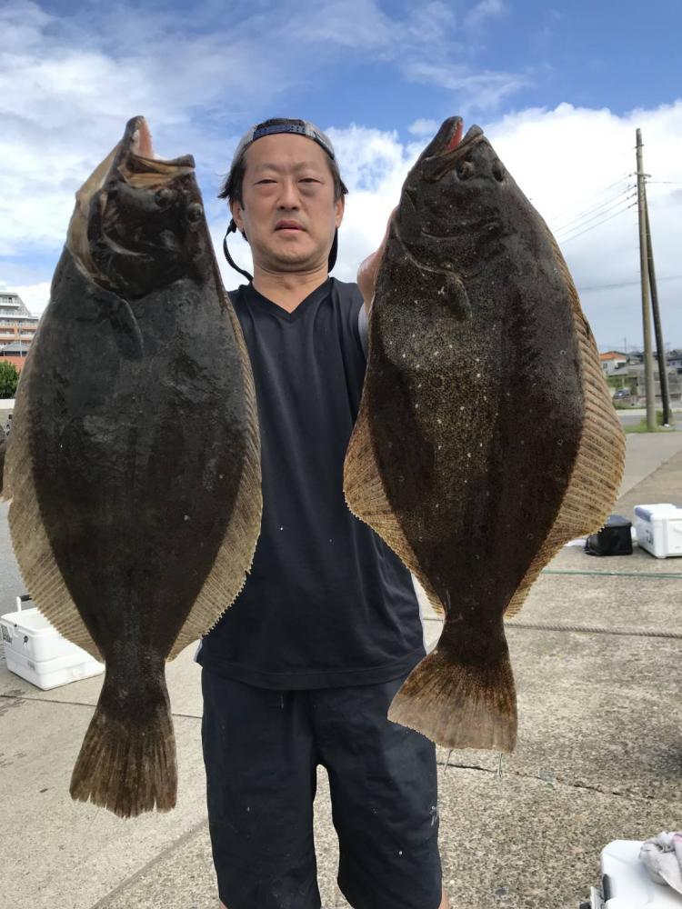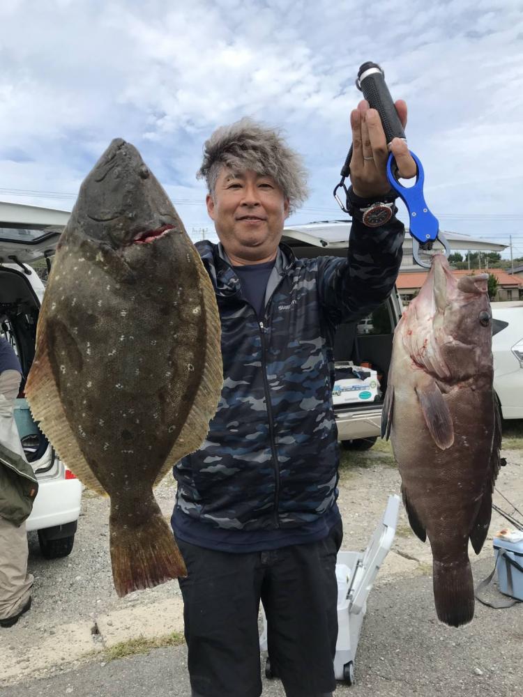 台風通過でウネリがありましたが次第に凪てきて良い凪になりました(^^) 2隻別々のポイントを狙いましたがどちらもヒラメサイズ主体で型くらいありましたね♪ ゲストはマハタ、カサゴ、ソイ、イナダ