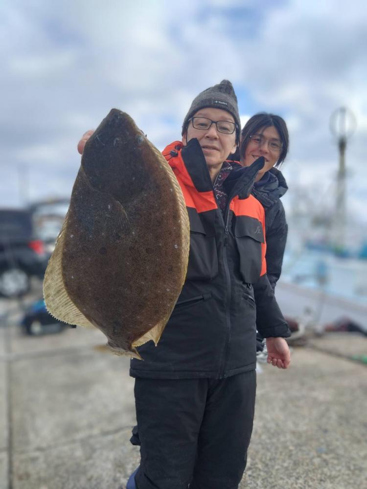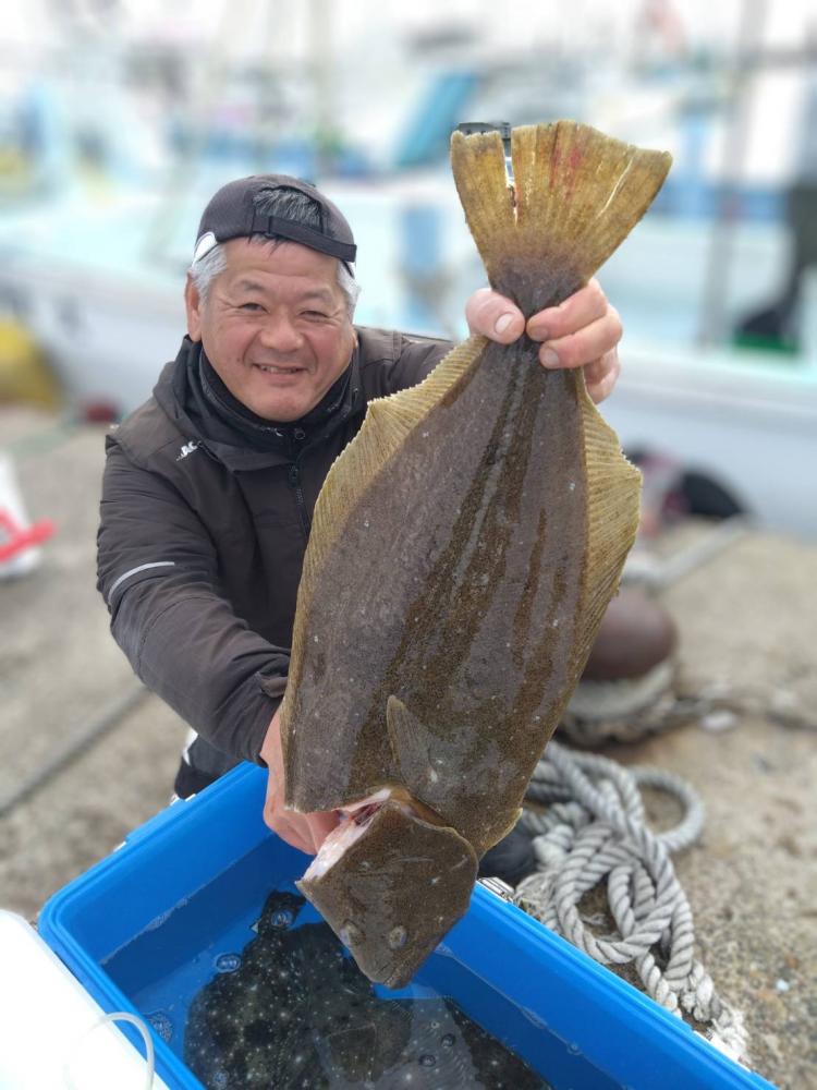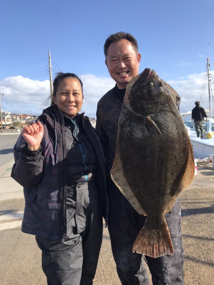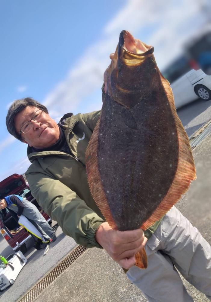 水色良く朝から良型まじりで型あり好調に釣れました(^^) ヒラメ釣り初めての貸竿の方8名様いましたが3枚ー8枚釣れ楽しんでもらえました♪ ゲストにカサゴ、マゴチ、イナダ、マハタ。