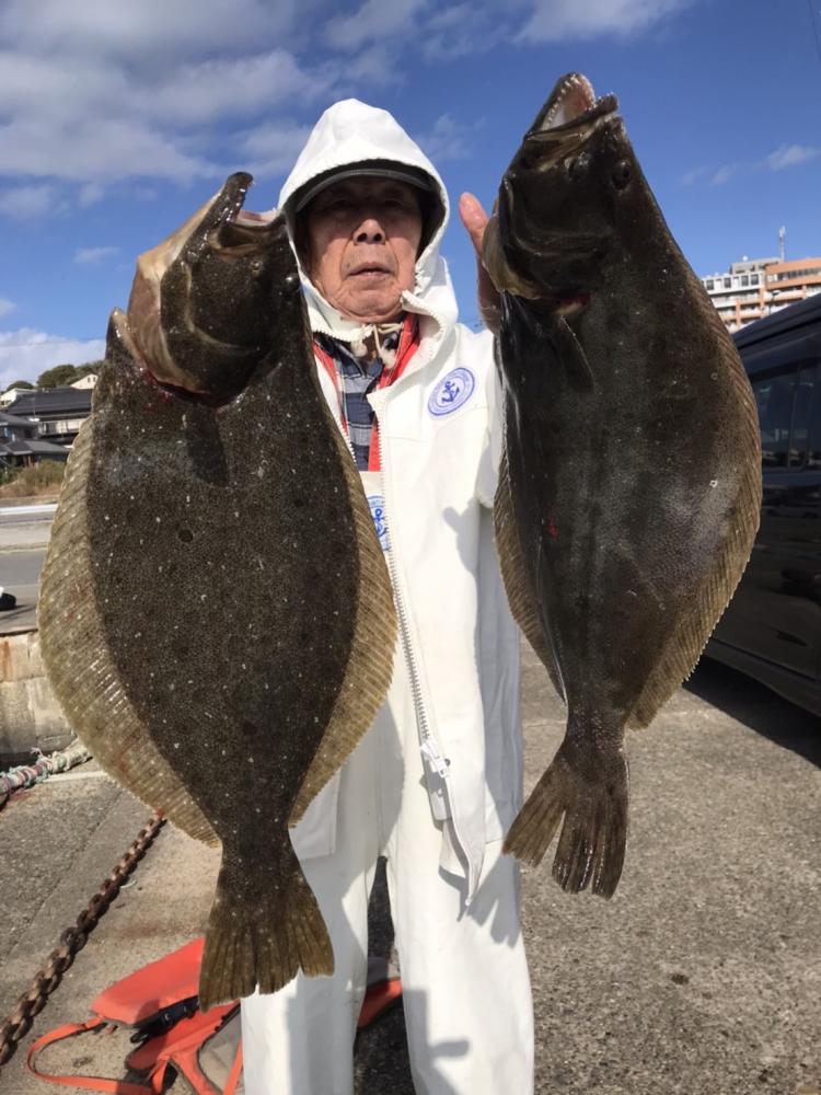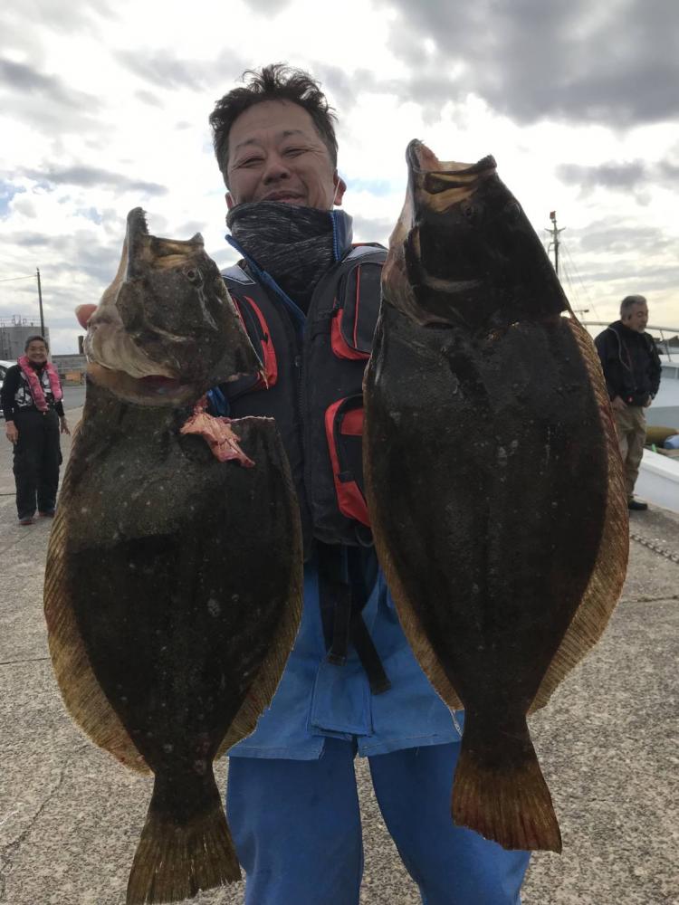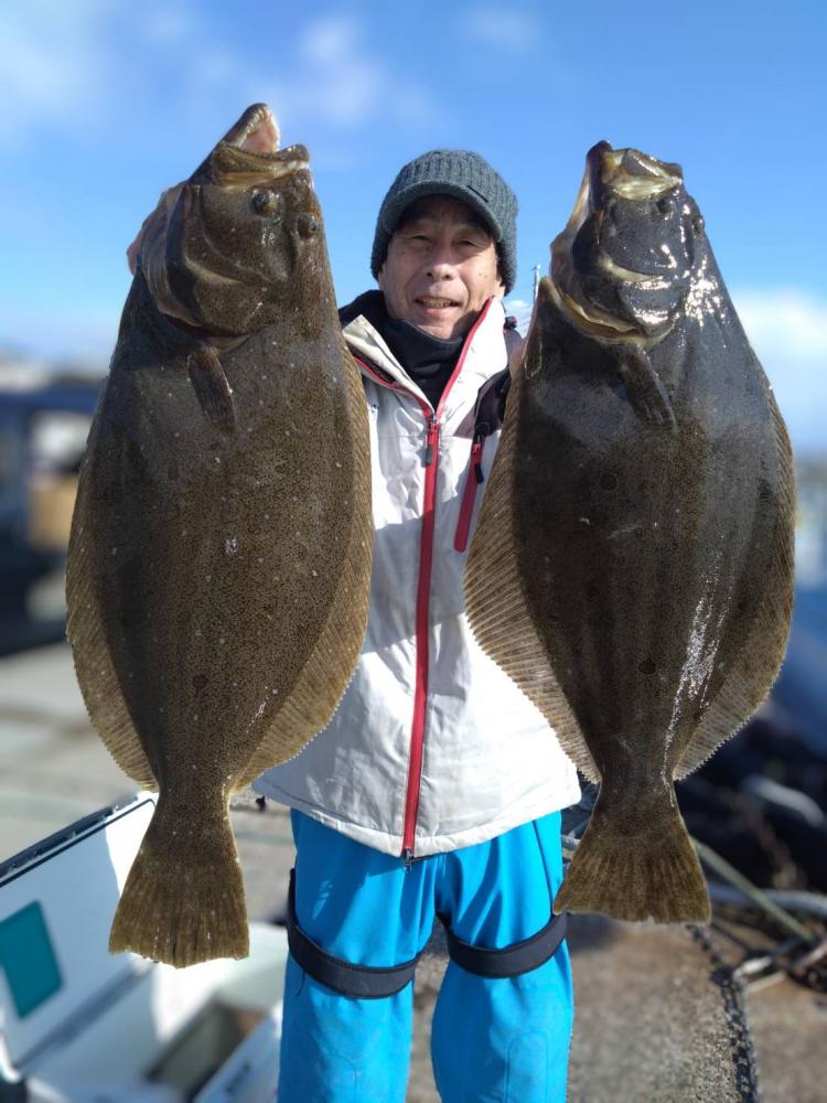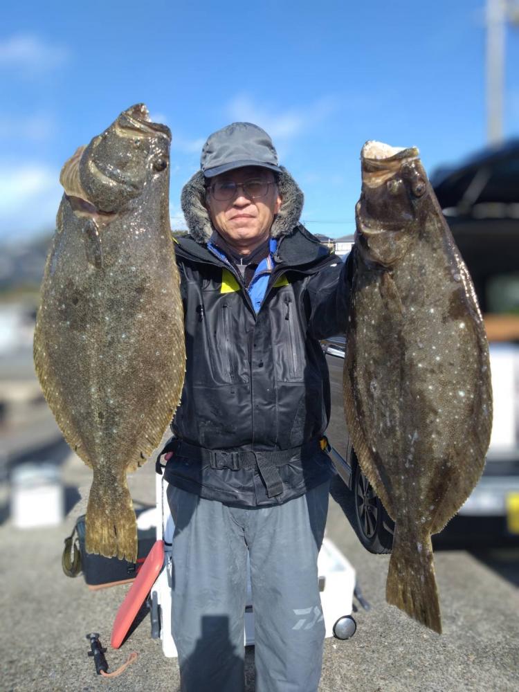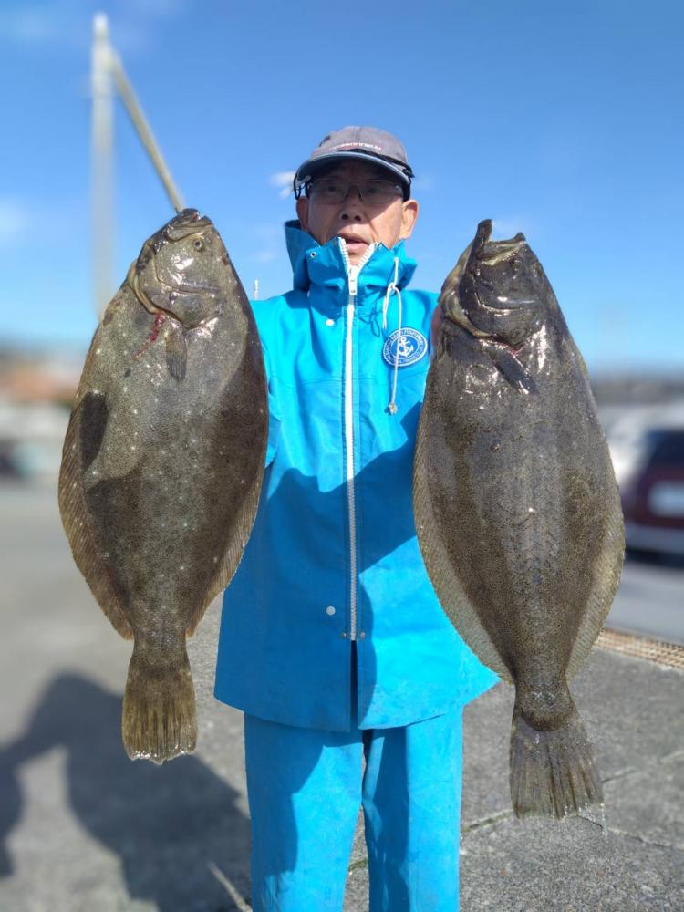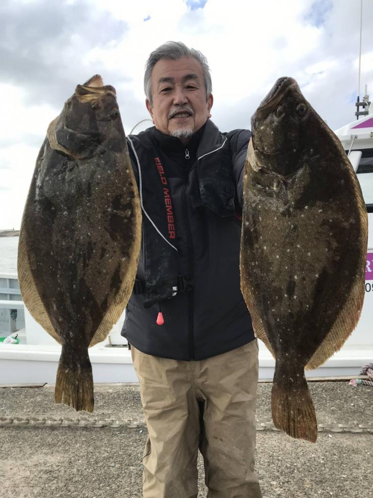 2隻の高低です。1枚の方は1名様で均等に釣れてました